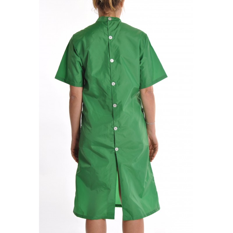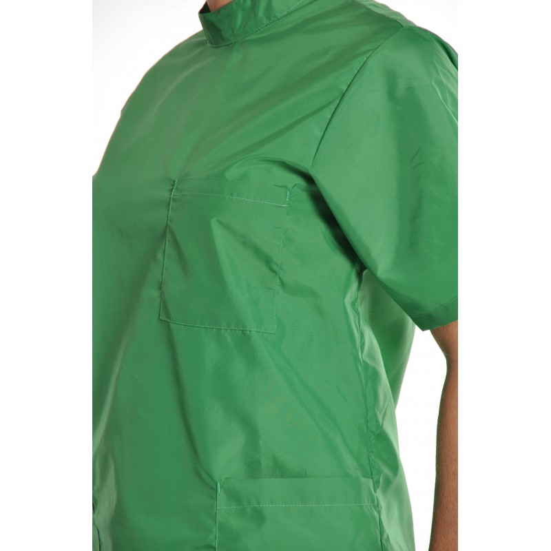 Découvrez notre blouse modèle Jade en nylon vert prairie. Cette blouse en nylon est la version manches courtes du modèle Emeraude. Vous aimerez son boutonnage dos et ses nombreuses poches.