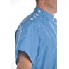 La blouse en nylon modèle Jacques coloris bleu pervenche vous séduira par son boutonnage original et ses manches courtes!