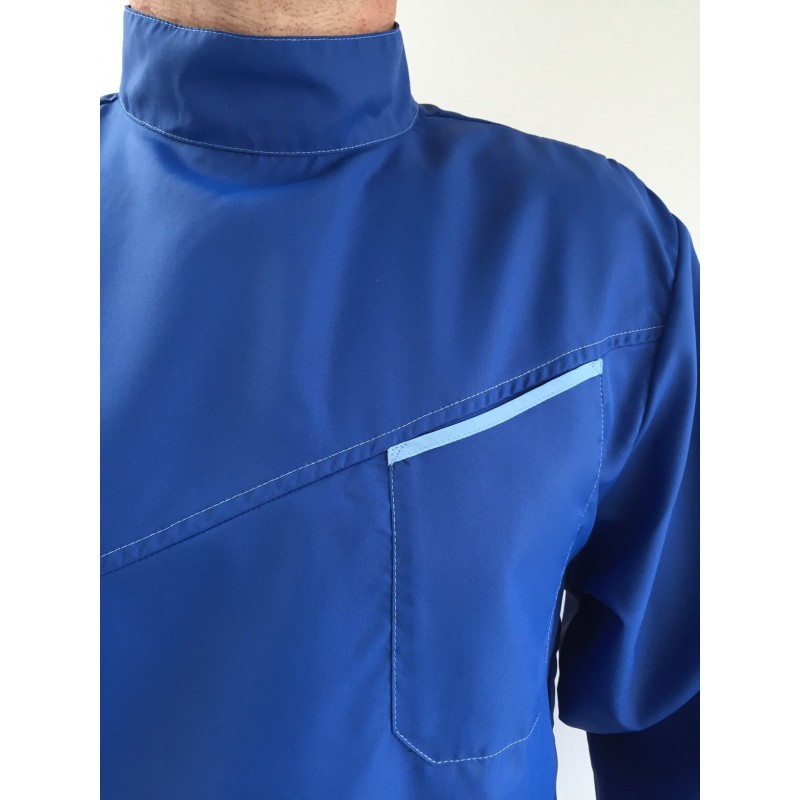 - 1 poche poitrine gauche avec biais bleu en bordure