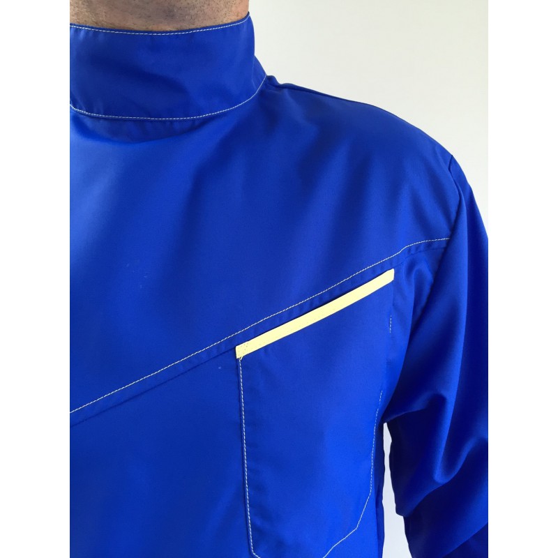 - 1 poche poitrine gauche avec biais jaune en bordure