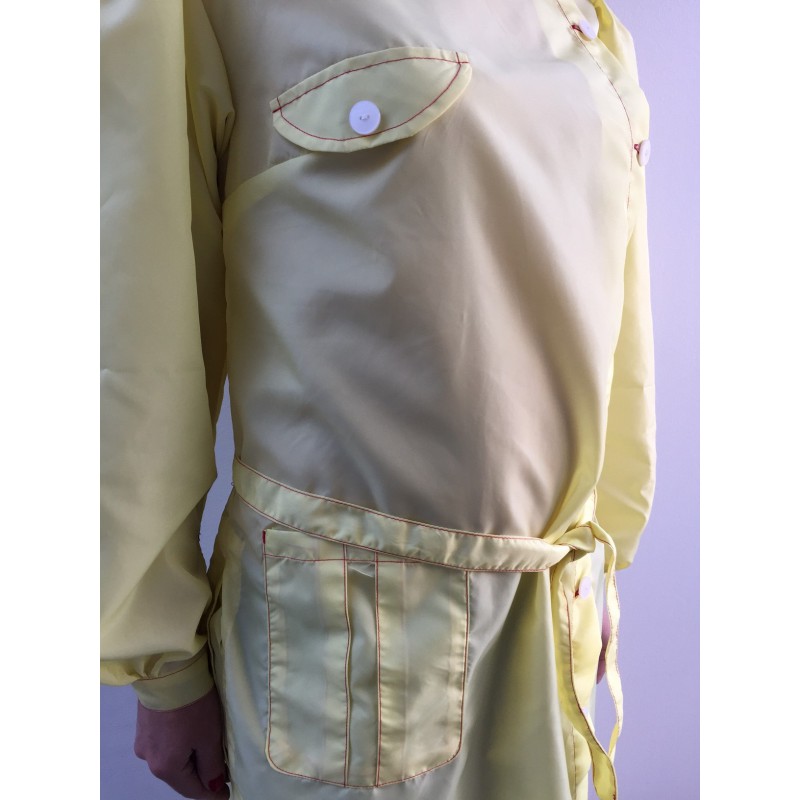 - 1 faux rabat arrondi poitrine droite fixé par un bouton