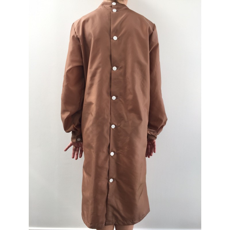 Blouse Emeraude en nylon tabac, son boutonnage dos et sa grande longueur !