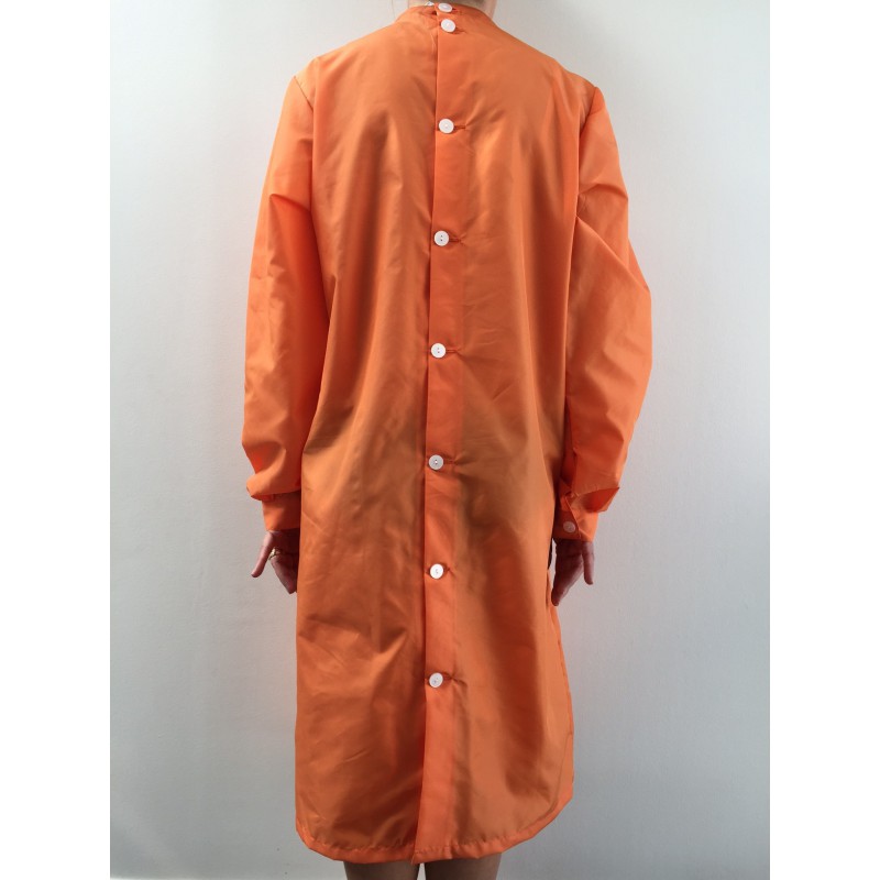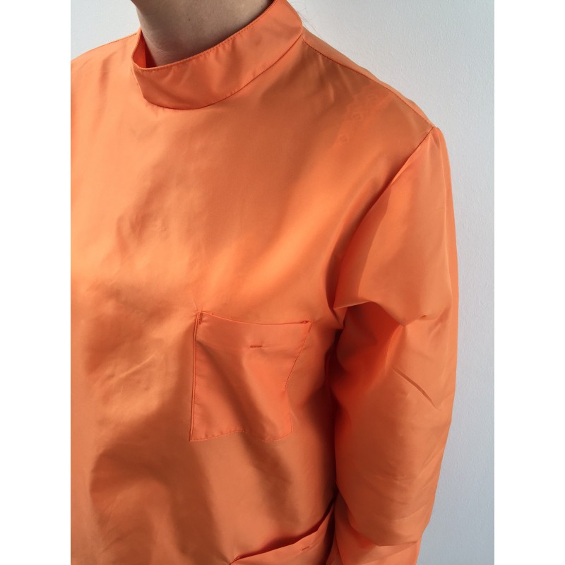 Blouse Emeraude en nylon orange, son boutonnage dos et sa grande longueur !