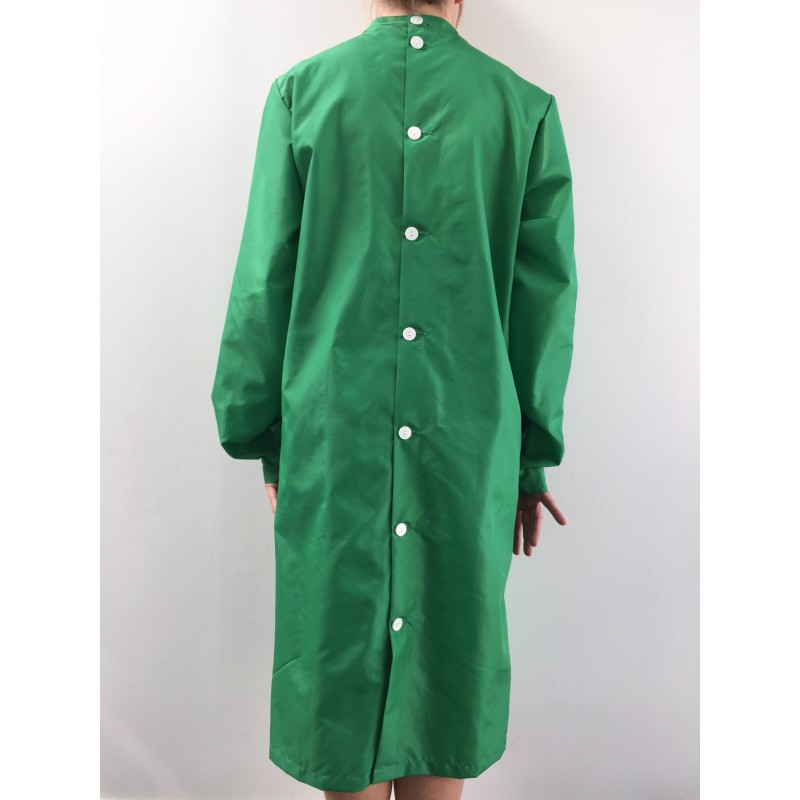 Blouse Emeraude en nylon vert vif, son boutonnage dos et sa grande longueur !