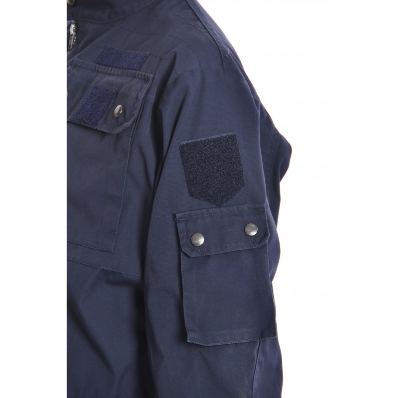 - 2 poches manches de 3 soufflets avec un rabat, fermées par un velcro et 2 boutons pressions décoratifs
