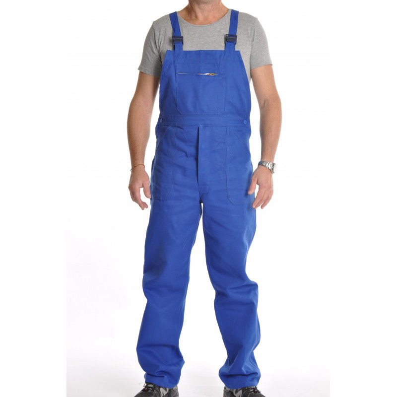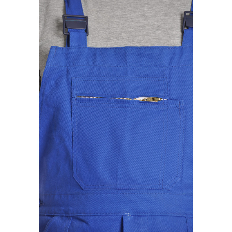 Cette cotte bretelles coloris bleu bugatti a été conçue pour être très robuste.