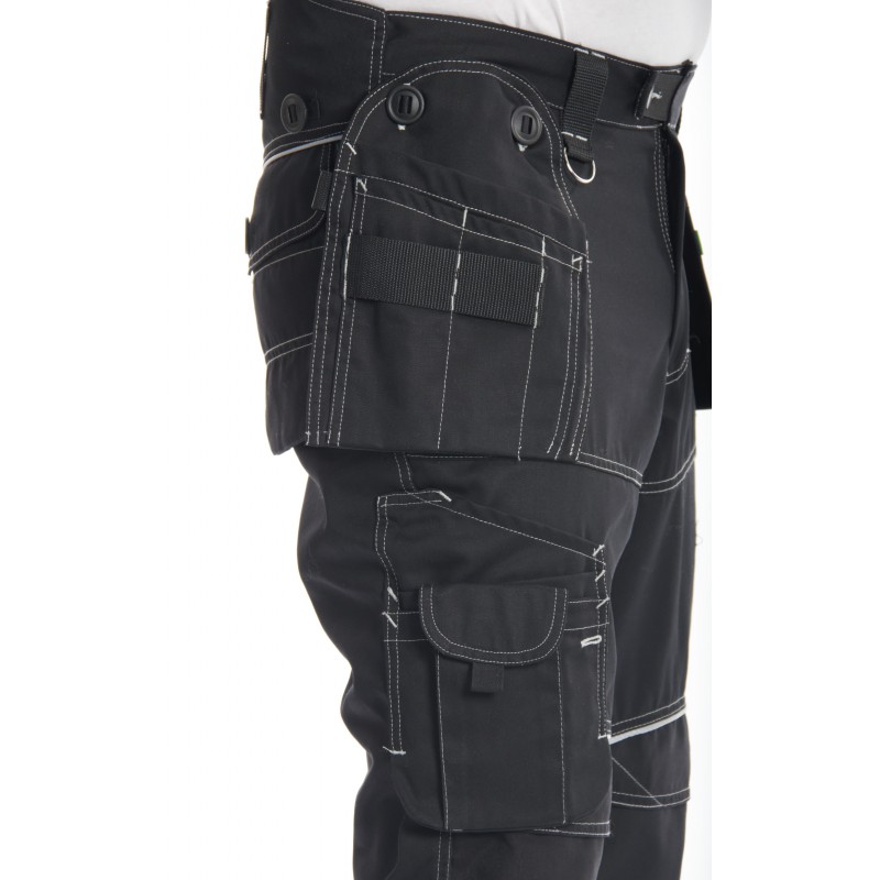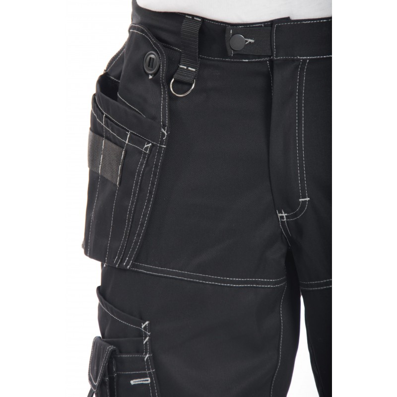 Pantalon de travail multipoches noir surpiqûres blanches avec genouillères amovibles PXIII AGA 61E7702223