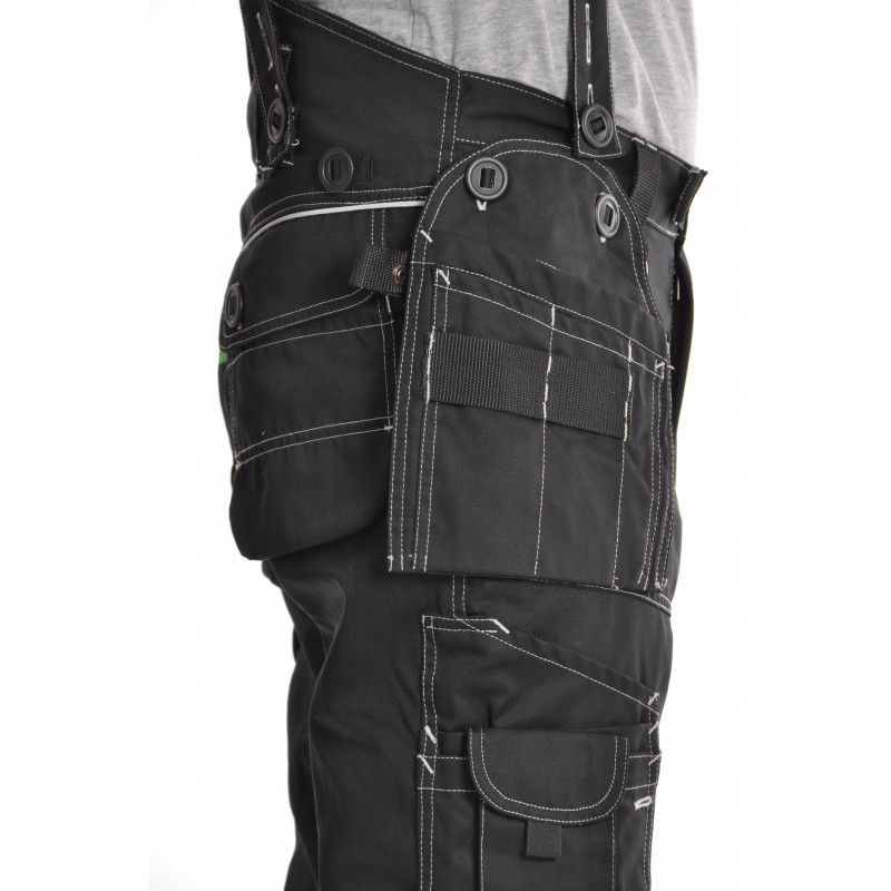 Avec ce pantalon de travail slim noir moderne multipoches avec bretelles et fonctionnel vous gagnerez du temps dans vos travaux.