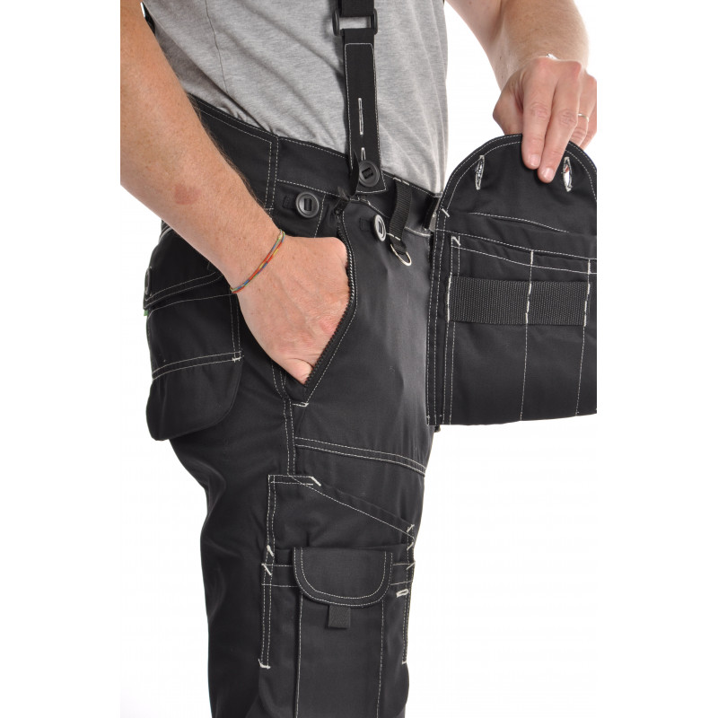 Pantalon de travail multipoches noir surpiqûres blanches avec bretelles et genouillères amovibles PXIII AGA 61E7702223
