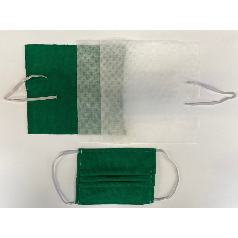 Ce kit comprend les fournitures pour fabriquer 50 masques ADULTE en tissu vert, "grand public" de catégorie 1.
