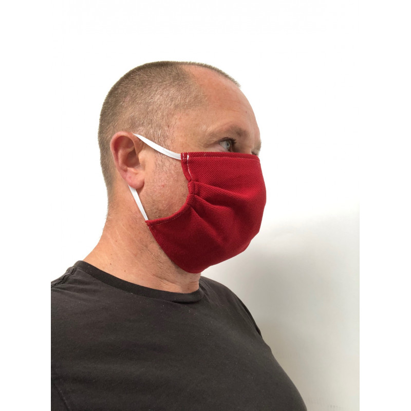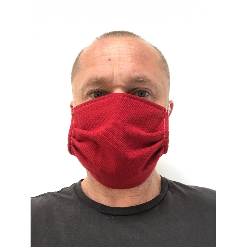 Coloris uni rouge mais ce masque existe également en bleu marine ou vert.