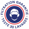 Filtration des particules de 3 microns de 98% après 10 lavages, ce qui garanti au minimum des performances jusque 30 lavages.