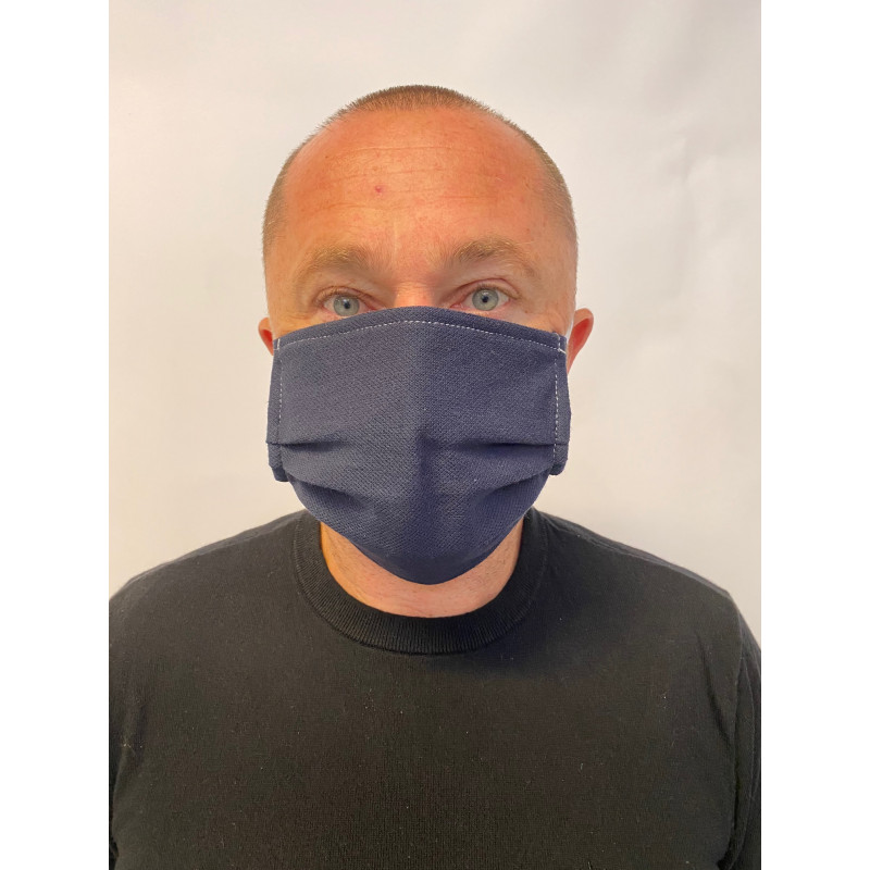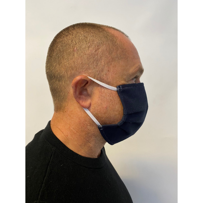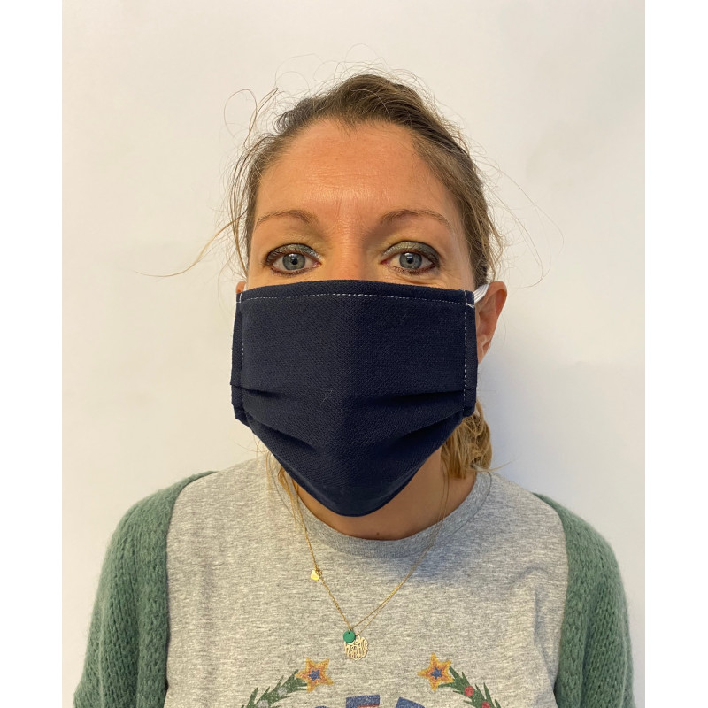 Coloris uni bleu marine t mais ce masque existe également en vert ou rouge.