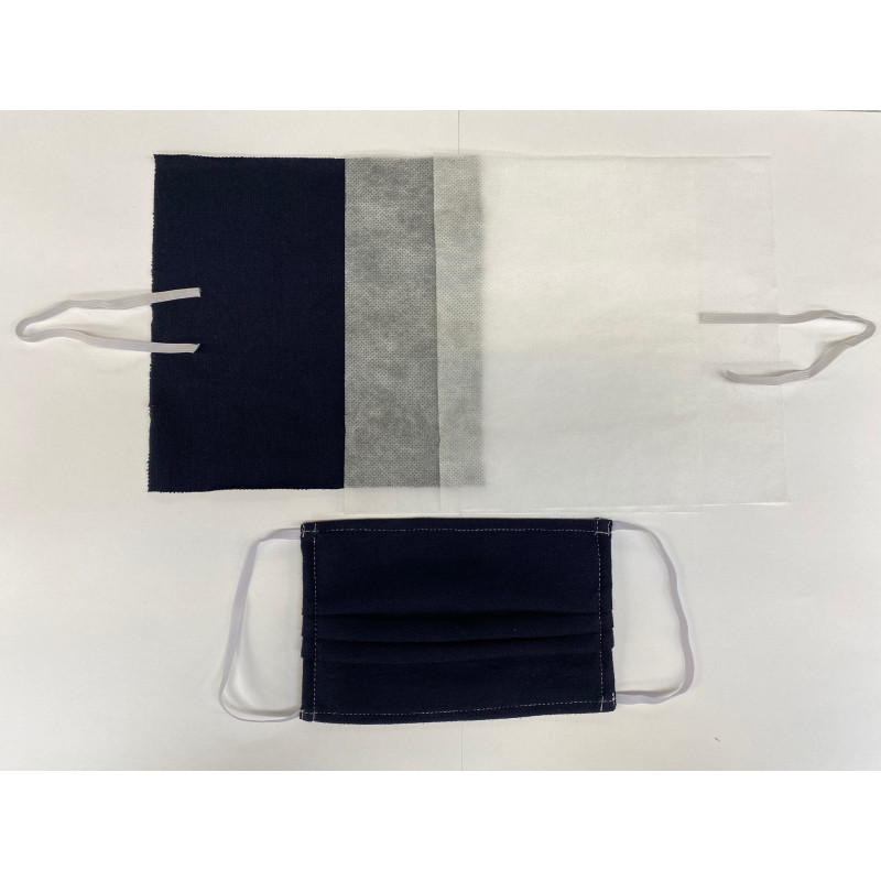Ce kit comprend les fournitures pour fabriquer 50 masques ADULTE en tissu bleu marine, "grand public" de catégorie 1.