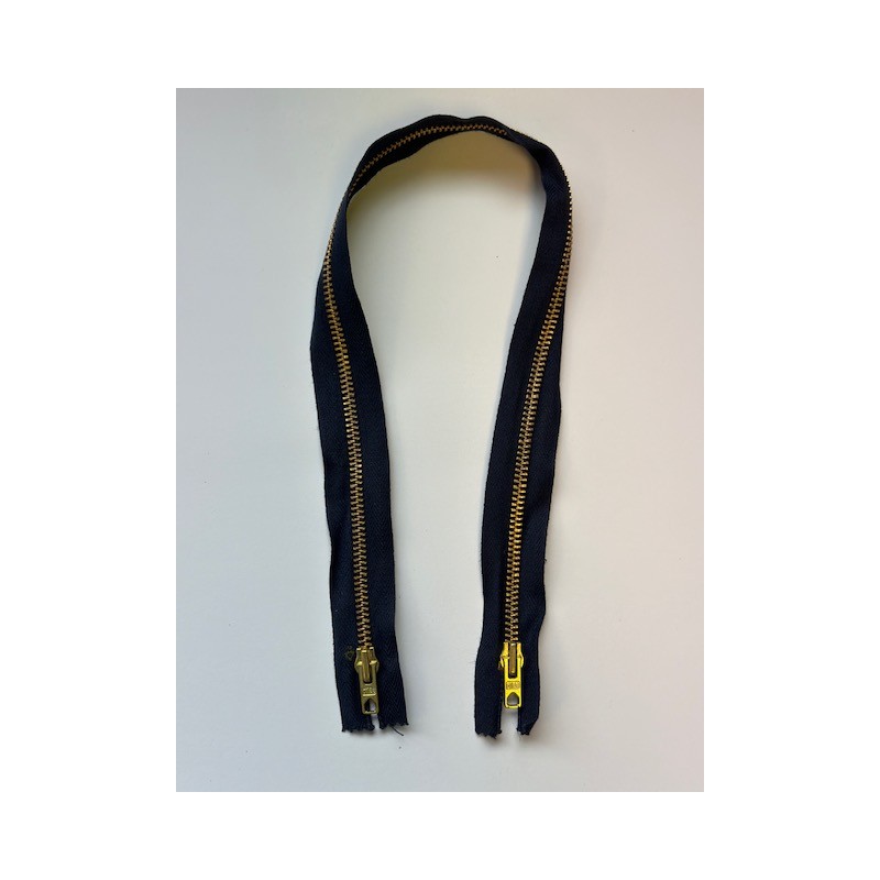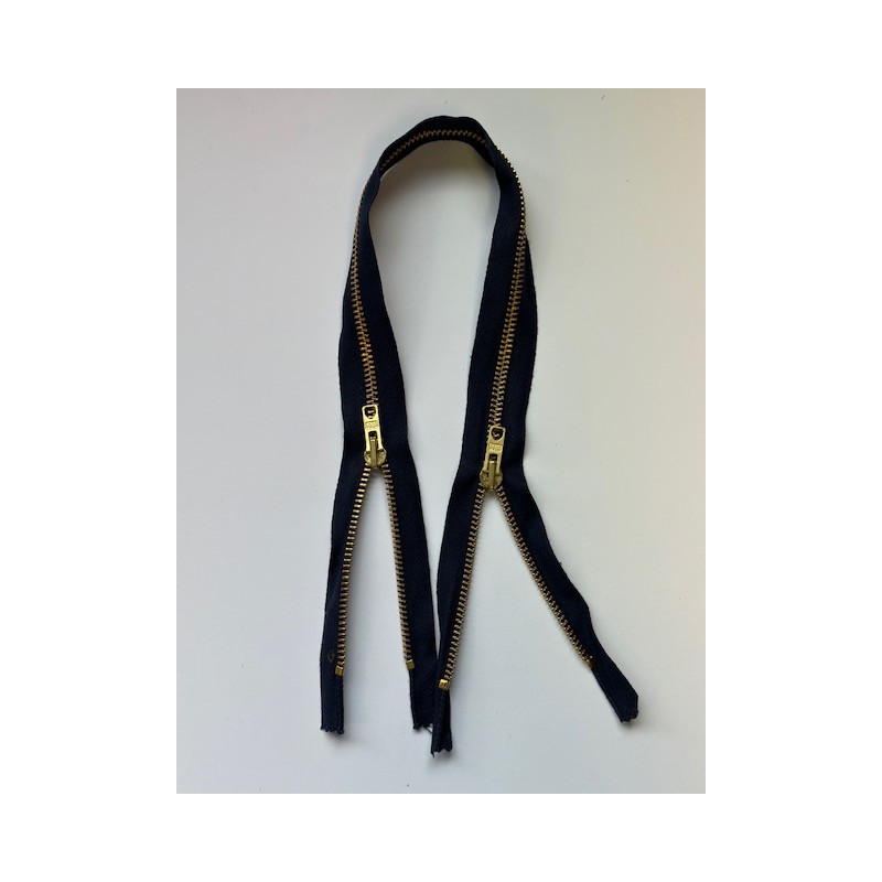 Fermeture à glissière métal double curseur bouche à bouche maille 6 Marine 58 cm
