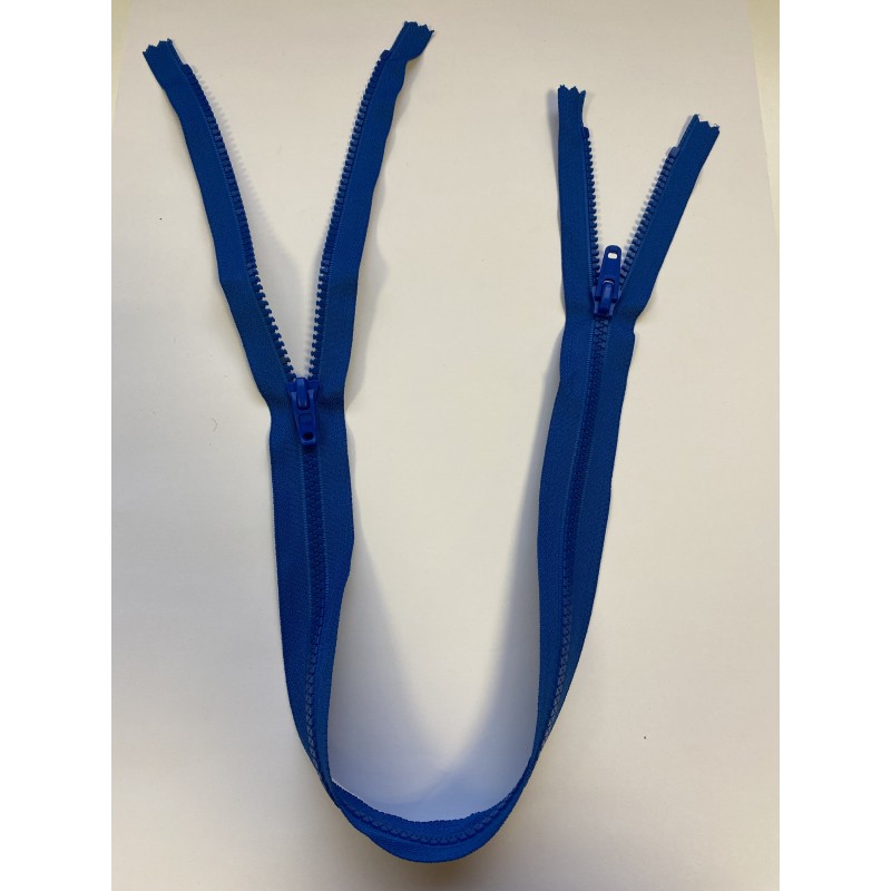 Fermeture à glissière injectée double curseur bouche à bouche maille 6 bleue 68 cm