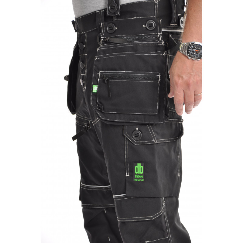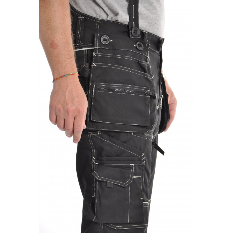 Le pantalon de travail slim Pro Expert IV avec genouillères amovibles (PXIV) est le dernier né de notre gamme Pro Expert. Vous êtes nombreux à avoir adopté ce pantalon et nous avons décidé d'y ajouter des bretelles élastiques réglables afin d'avoir un parfait maintien du pantalon.