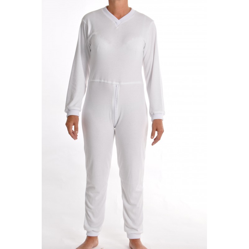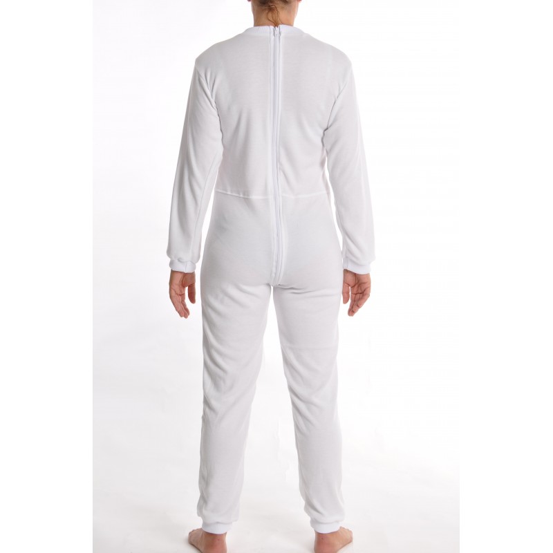 Cette grenouillère adulte en jersey blanc a été conçue pour être confortable et économique.