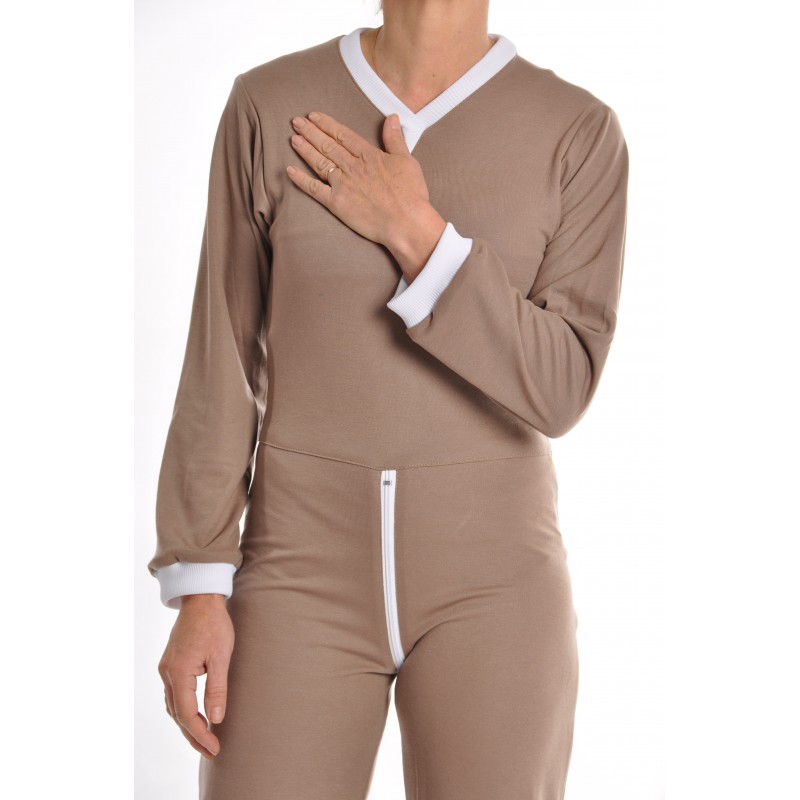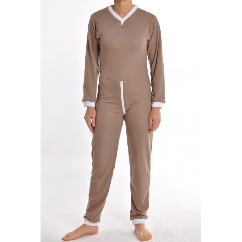 Cette grenouillère adulte marron a été conçue pour être confortable et économique.