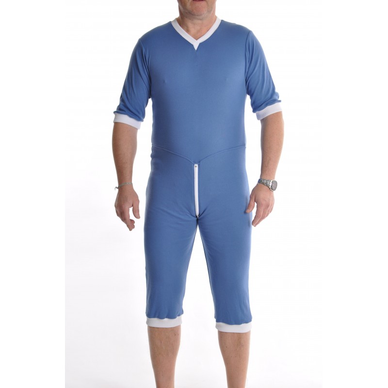 Grenouillère adulte bleue en jersey extensible jambes 3/4