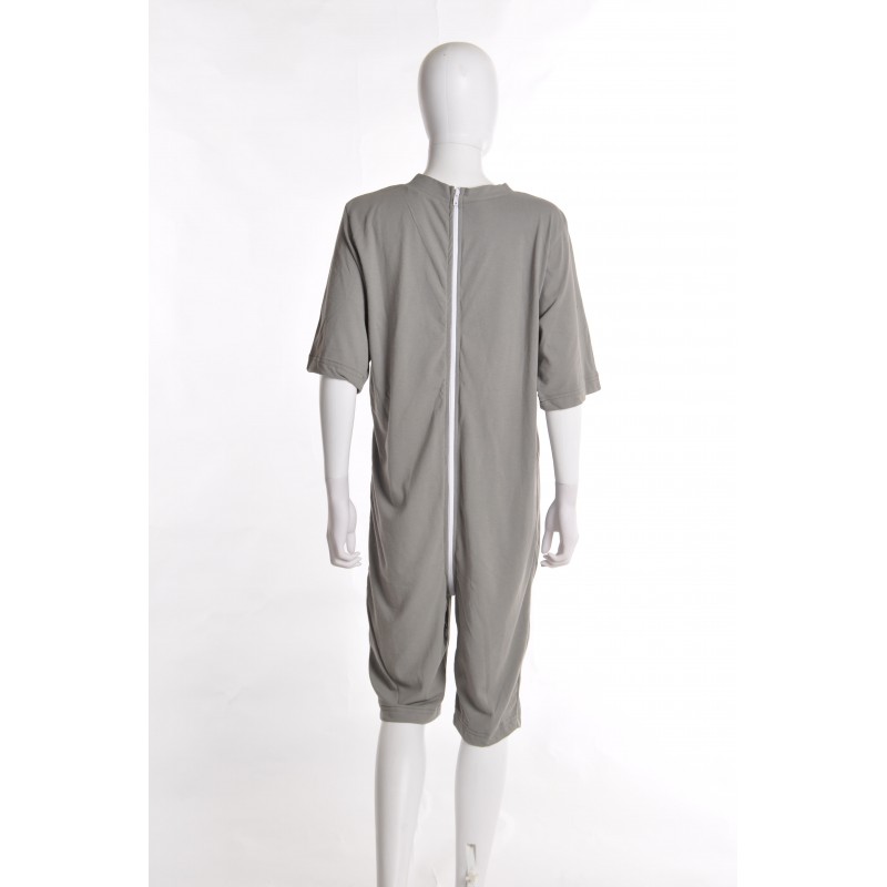 Les équipes ont également pensé aux personnels soignants qui aident à l’enfilage de la grenouillère adulte grise extensible afin qu'elle soit la plus pratique possible.